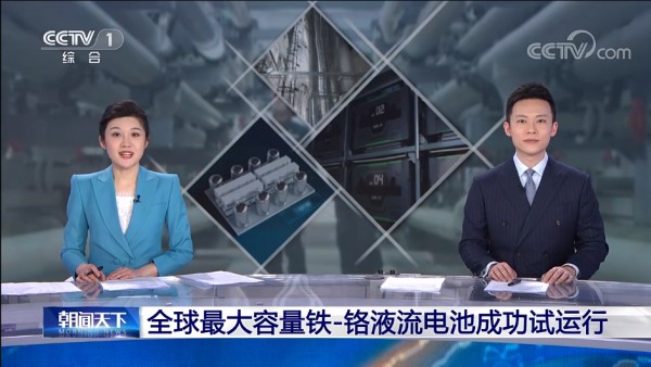 央视报道!全球最大容量铁-铬液流电池试运行成功